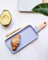 Bandeja em cerâmica azul com alça em MDF
