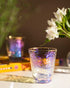 O Copo que fica ainda mais lindo na luz do dia. Feito vidro marchetado, com bordinha dourada e furta-cor.