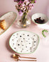 Pratinho em porcelana com bolinhas pretas e bordinha verde