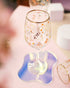 Toda artesanal, a taça para vinho Botânica tem estampinhas de flores do campo com uma bordinha que é um verdadeiro charme na cor dourada.