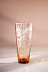 Copo na cor âmbar, feito em vidro marchetado e em forma Geométrica, com um detalhezinho precioso, a bordinha dourada.
